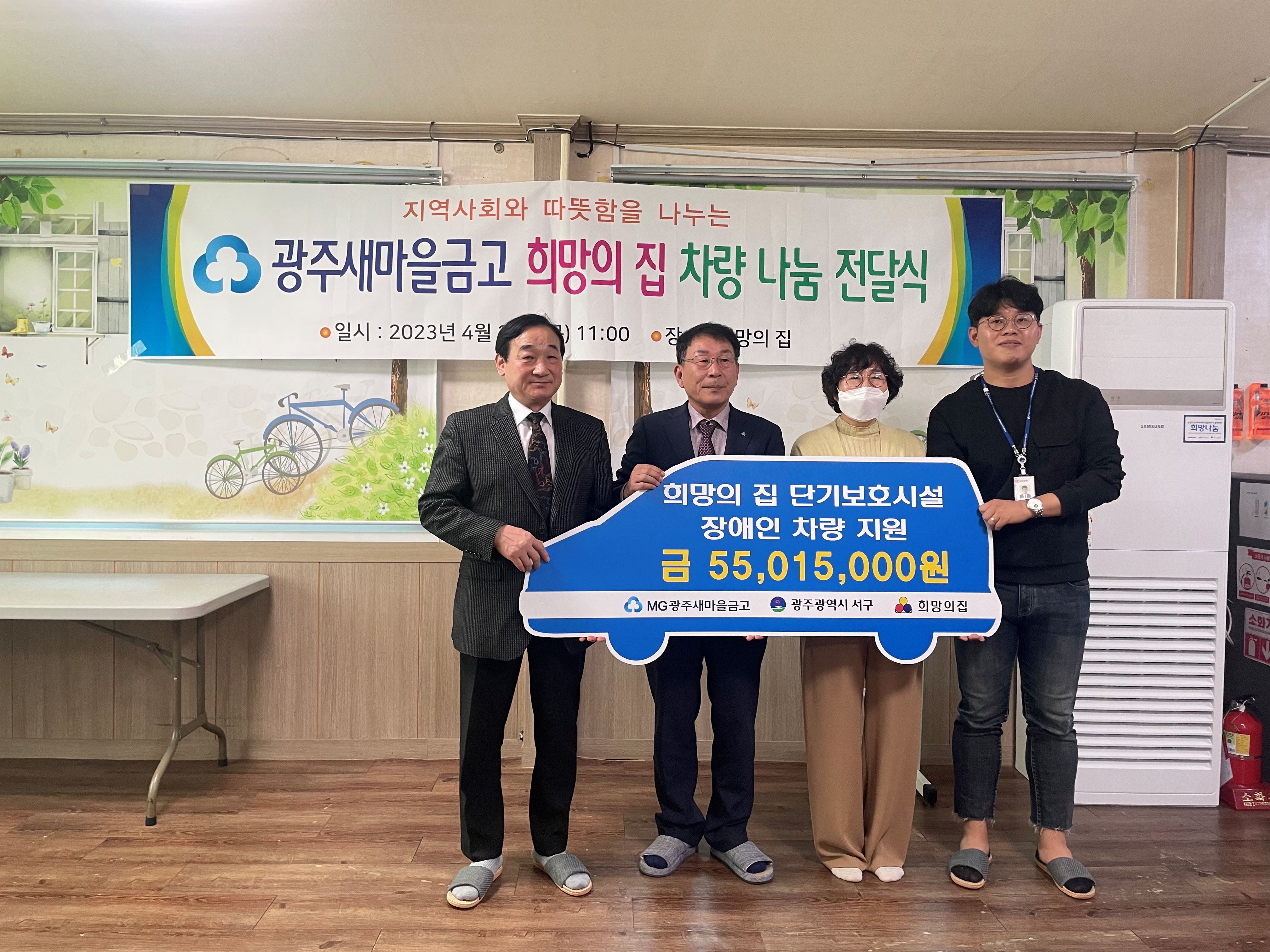 ±¤ÁÖ»õ¸¶À»±Ý°í´Â 2023³â 4¿ù 20ÀÏ ±¤ÁÖ Èñ¸ÁÀÇÁý¿¡ 5,500¸¸¿ø »ó´çÀÇ Àå¾ÖÀÎÂ÷·®À» Áö¿øÇÏ¿´½À´Ï´Ù.À̹ø Â÷·®³ª´® Àü´Þ½ÄÀº ±¤ÁÖ¼±¸Ã»°ú Çù¾÷ÇÏ¿© ±¤ÁÖ»õ¸¶À»±Ý°í ¾÷¹«±¸¿ªÀÎ ¼±¸³» ¿¾ÇÇÑ È¯°æÀÇ Ãë¾à°èÃþ¿¡°Ô »õ¸¶À»±Ý°íÀÇ µû¶æÇÔÀ» ³ª´² ÁÙ ¼ö ÀÖ´Â ÁÁÀº ±âȸ°¡ µÇ¾ú½À´Ï´Ù.±¤ÁÖ»õ¸¶À»±Ý°í´Â Áö¿ª»çȸ°øÇå »ç¾÷À¸·Î Àå¾ÖÀνü³ Â÷·®Áö¿ø, ÀåÇбÝÁö¿ø, ¼Ò¿Ü°èÃþ ¹°Ç°Áö¿ø µî ¿©·¯ º¹Áö»ç¾÷À» ÁøÇàÇϰí ÀÖÀ¸¸ç ÇâÈÄ¿¡µµ ȸ¿øº¹Áö »Ó¸¸ ¾Æ´Ï¶ó Áö¿ª»çȸ¿Í »ó»ýÇÒ ¼ö ÀÖ´Â ¼¹Î±ÝÀ¶±â°üÀÌ µÇµµ·Ï ÇϰڽÀ´Ï´Ù.